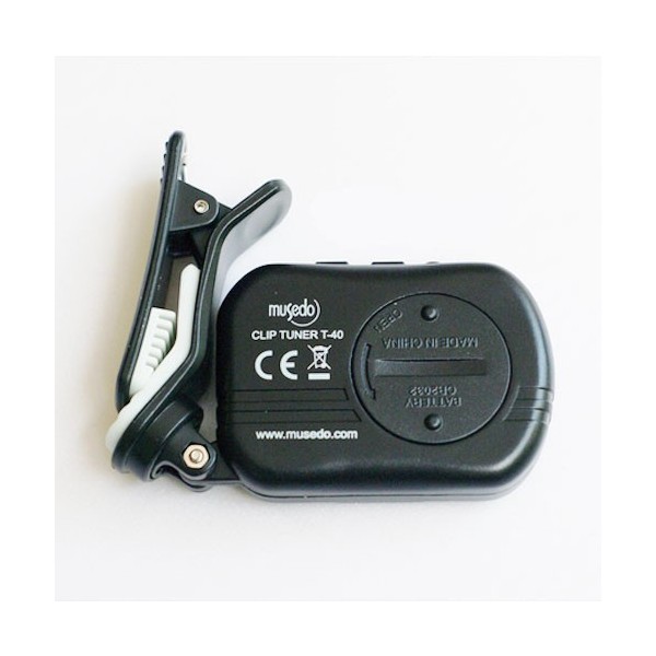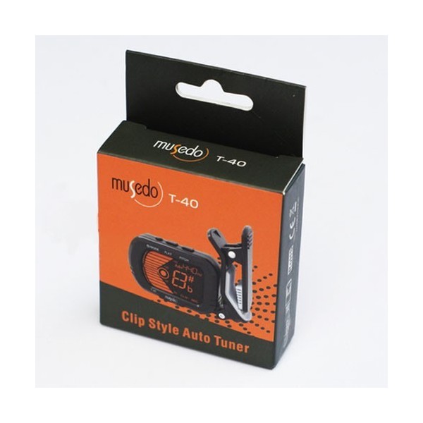 Afinador de Pinza MUSEDO T-40 ideal para instrumentos de cuerda como guitarras, bandurrias y laudes. El afinador de Pinza MUSEDO T-40 es preciso y fácil de utilizar. La pantalla cambia de posición y ángulo para facilitar su visualización y cambia a verde para obtener de forma rápida la afinación exacta. Con tan solo 50 g de peso el Afinador de Pinza Musedo T-40 tiene un rango de afinación de A0 a C8.