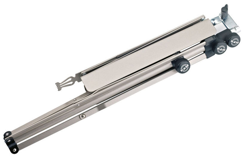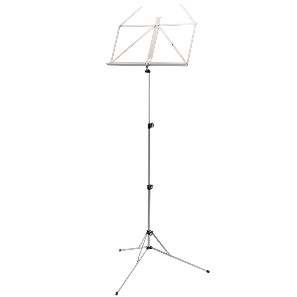 Atril K&M 10100 fabricado en acero niquelado, plegable para facilitar su uso a cualquier altura y llegando a alcanzar 144 cm. Peso: 1 kg. K&M es sinónimo de calidad en cuanto a herrajes y hardware se refiere.