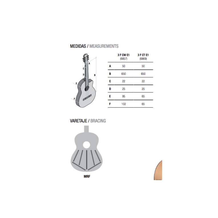 Guitarra Cutaway Alhambra 3F. Tapa: Abeto macizo. Aros y Fondo: Sicomoro. Mango: Samanguila. Diapasón: Palosanto. Clavijeros: Silver A. Electrificación: Fishman Clásica M. Cuerdas D´addario EXP44. La Guitarra Cutaway Alhambra 3F es una guitarra electroflamenca de nivel intermedio con cómodo cutaway y con la fiabilidad que confiere la construcción de Alhambra y la electrificación Fishman. Posibilidad de elegir entre dos modelos: 3F-CW (caja ancha 95mm) o 3F-CT (caja estrecha 65mm). Funda incluida.