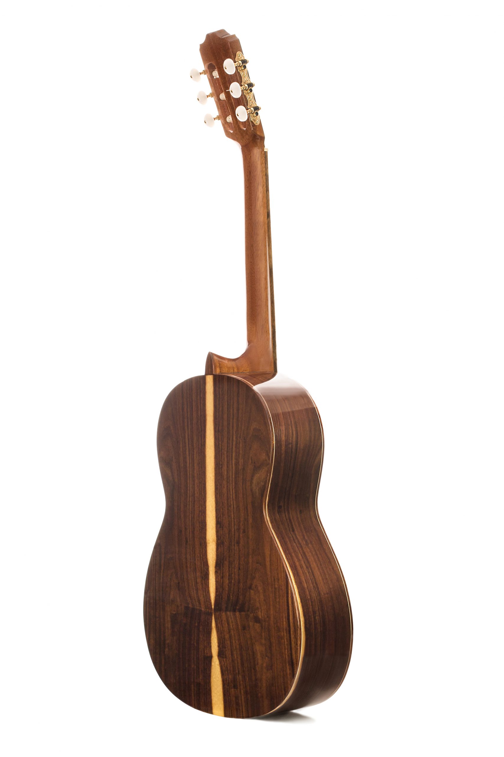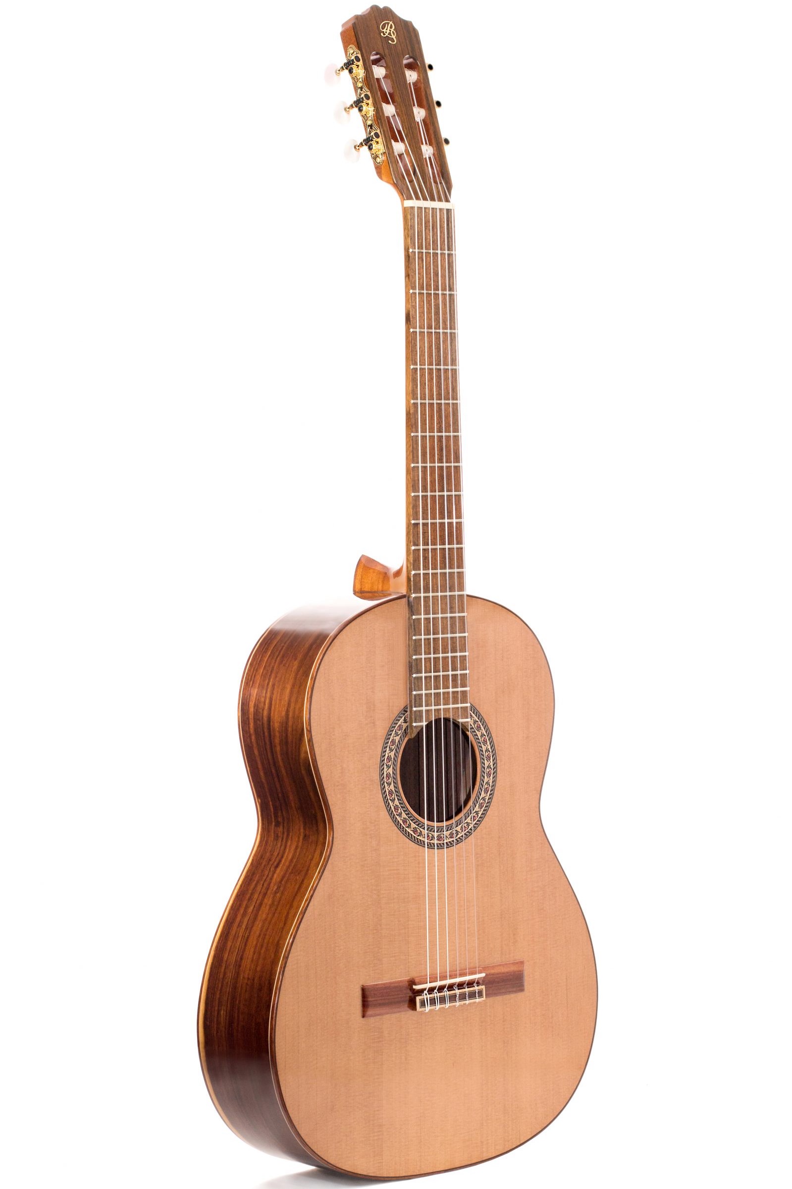 Guitarra Prudencio Saez 3-S. Tapa: Cedro macizo. Aros y Fondo: Granadillo mexicano laminado. Mango: Samanguila. Diapasón: Palosanto. Clavijeros: Lira dorado. Puente: Palosanto. Escala: 650mm. Ancho cejuela: 52mm. Ancho zoquete: 96mm. Ancho culata: 102mm. La guitarra Prudencio Saez 3-S, antiguo modelo 12, es una guitarra de iniciación construida siguiendo los métodos artesanales con una espectacular y vistosa madera de granadillo.