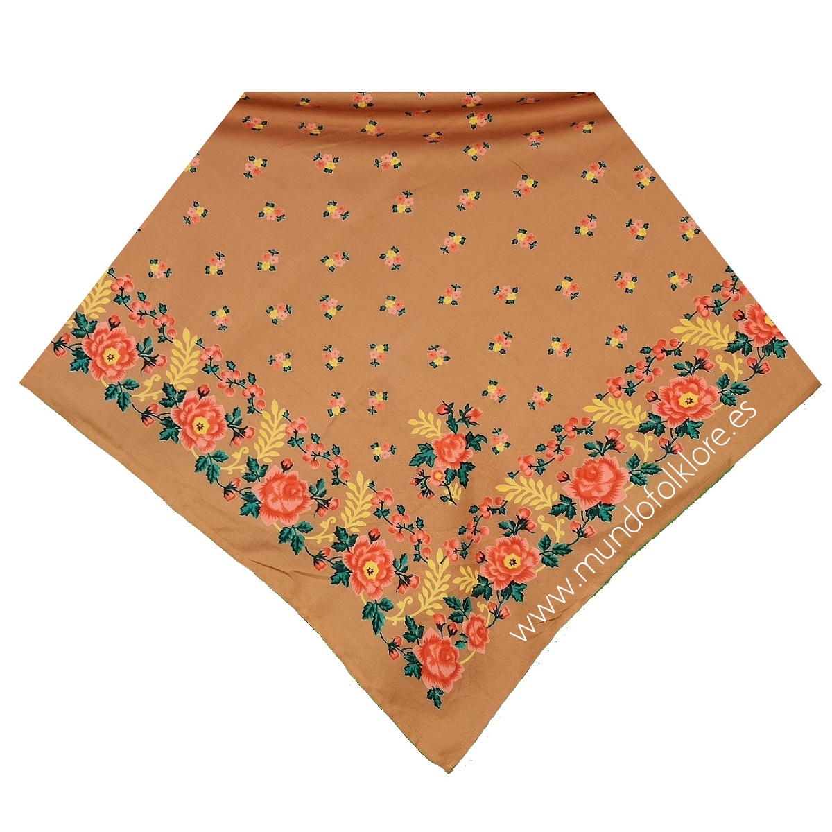 Pañuelo Galicia 100% fabricado en viscosa de máxima calidad con estampación floral tradicional. Pañuelo utilizado en prácticamente en la indumentaria tradicional de cada rincón de la península. Se trata de un modelo muy similar al típico pañuelo portugués. El pañuelo Galicia mide 90 cm de lado y está disponible con el fondo en varios colores.