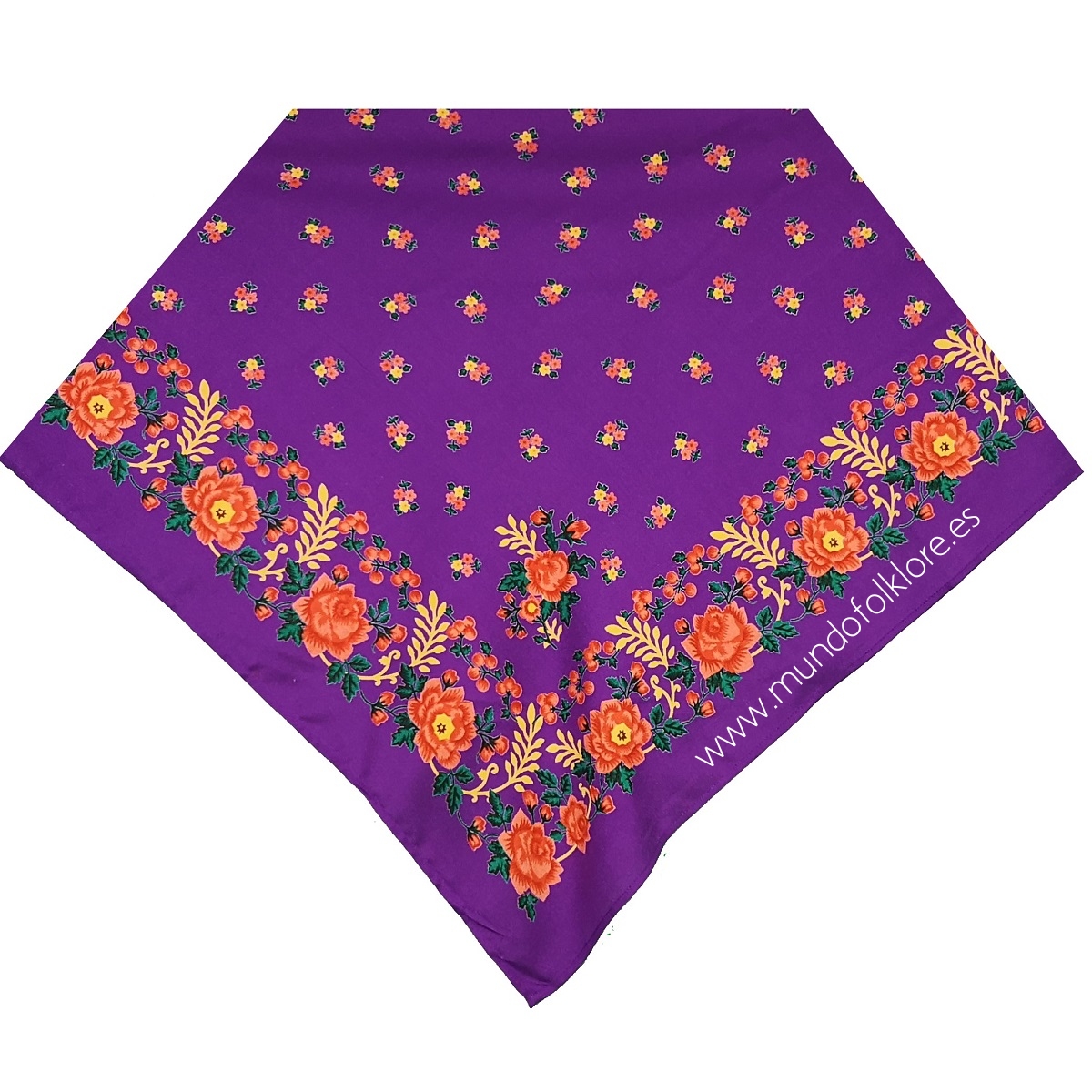 Pañuelo Galicia 100% fabricado en viscosa de máxima calidad con estampación floral tradicional. Pañuelo utilizado en prácticamente en la indumentaria tradicional de cada rincón de la península. Se trata de un modelo muy similar al típico pañuelo portugués. El pañuelo Galicia mide 90 cm de lado y está disponible con el fondo en varios colores.