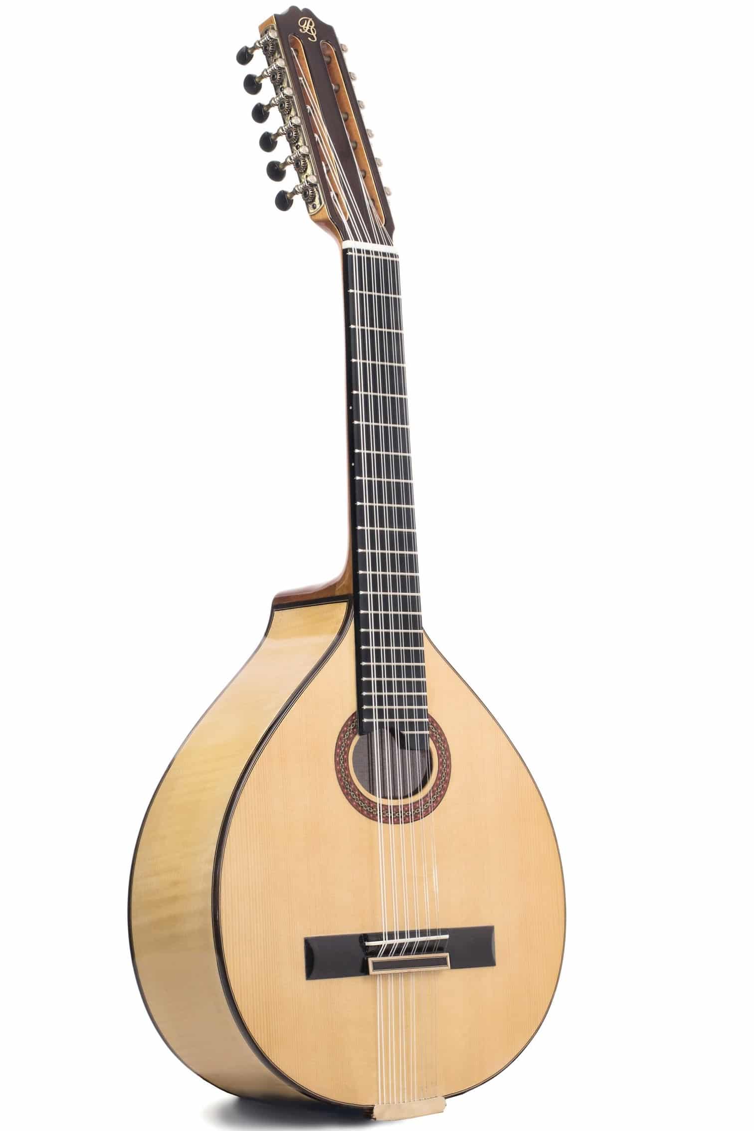 Laud PRUDENCIO SAEZ 70. Tapa: Abeto macizo. Aros y Fondo: Arce rizado macizo. Mango: Cedro. Diapasón: Ébano. Clavijeros: Dorados. Escala: 500mm. Ancho cejuela: 52mm. Ancho zoquete: 94mm. Ancho culata: 104mm. Cejuela y silleta de hueso. El laud Prudencio Saez 70 de acabado brillo, está construido de manera artesanal con maderas macizas seleccionadas, añadiendo a su espectacular sonido un vistoso acabado que combina el veteado de la madera blanca del arce con los perfiles oscuros del palosanto.