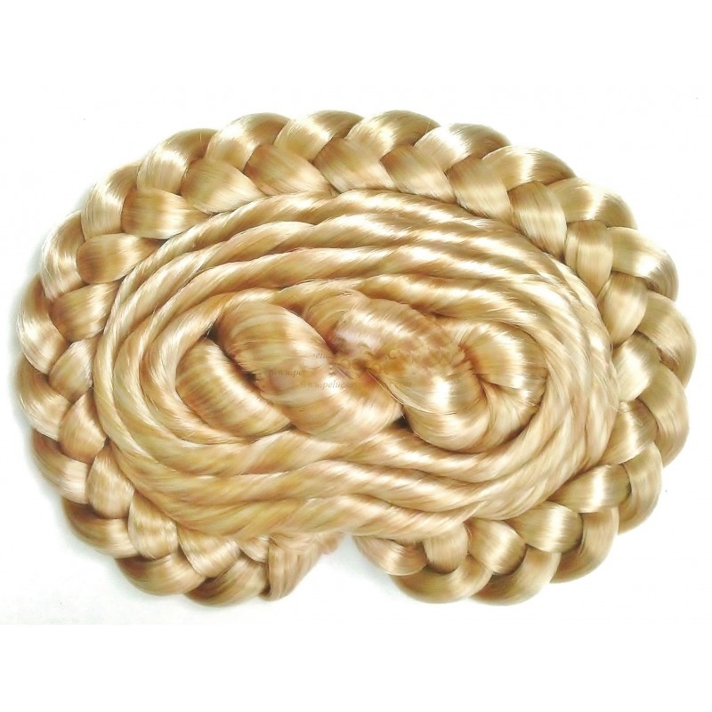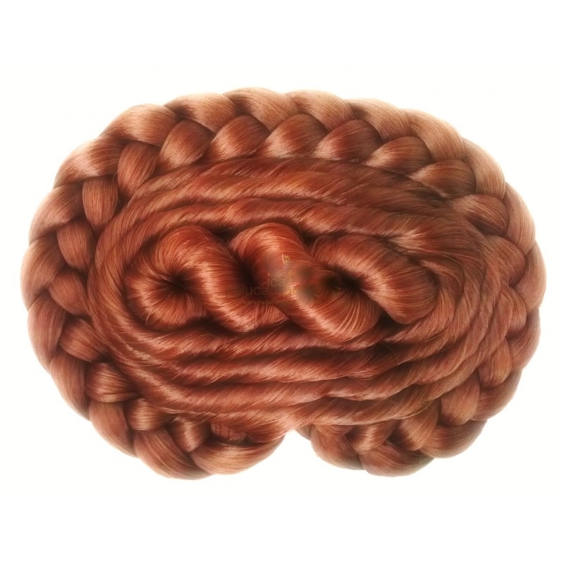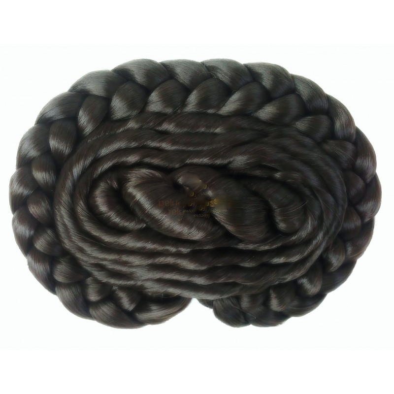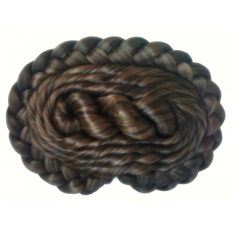 Moño Fallera Tradicional Completo. Modelo propio del peinado tradicional en distintas regiones entre el siglo XVIII y principios del XX, más extendido en la zona levantina y Aragón. Trenzado a mano con cabello sintético de primera calidad. Disponible en varias tonalidades (consultar carta de colores), y dos tamaños: Grande (21×16 cm.- 2 trenzas) y Mediano (17×12 cm. – 1 trenza). Se puede servir con o sin enganche en el moño trasero (mirar fotografías).