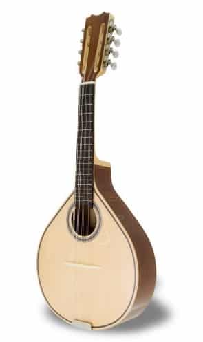 Mandolina Portuguesa APC 305. Tapa: Abeto macizo. Aros y Fondo: Sapelly macizo. Mástil: Cedro. Diapasón: Ébano. Clavijeros: Plateados. La Mandolina Portuguesa APC 305 está construida artesanalmente con maderas de primera calidad. Tiro: 364 mm