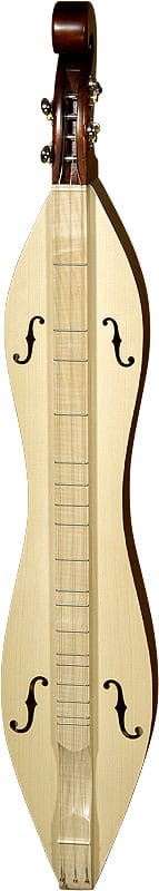 Dulcimer Hora D-1210. Dulcimer construido con tapa de abeto laminado, fondo de lima laminado, aros y mango de arce macizo. Dimensiones: 93x16x7,5 cm. Aunque el dulcimer de los Apalaches apareció por primera vez a principios del siglo XIX entre las comunidades de inmigrantes escoceses e irlandeses de las montañas Apalaches, el instrumento no tiene precedentes conocidos en Irlanda o Escocia. Debido a esto, y a la escasez de registros escritos, la historia del dulcimer de los Apalaches ha sido, hasta hace relativamente poco, en gran parte especulativa. El desarrollo organológico del dulcimer se divide en tres períodos: transicional (1700 a mediados del siglo XIX), anterior al renacimiento o tradicional (mediados del siglo XIX a 1940) y renacimiento o contemporáneo (después de 1940). La forma general del instrumento ha adoptado muchas formas, pero las más populares son el reloj de arena, la elipse, la lágrima y un trapezoide o rectángulo largo y estrecho.