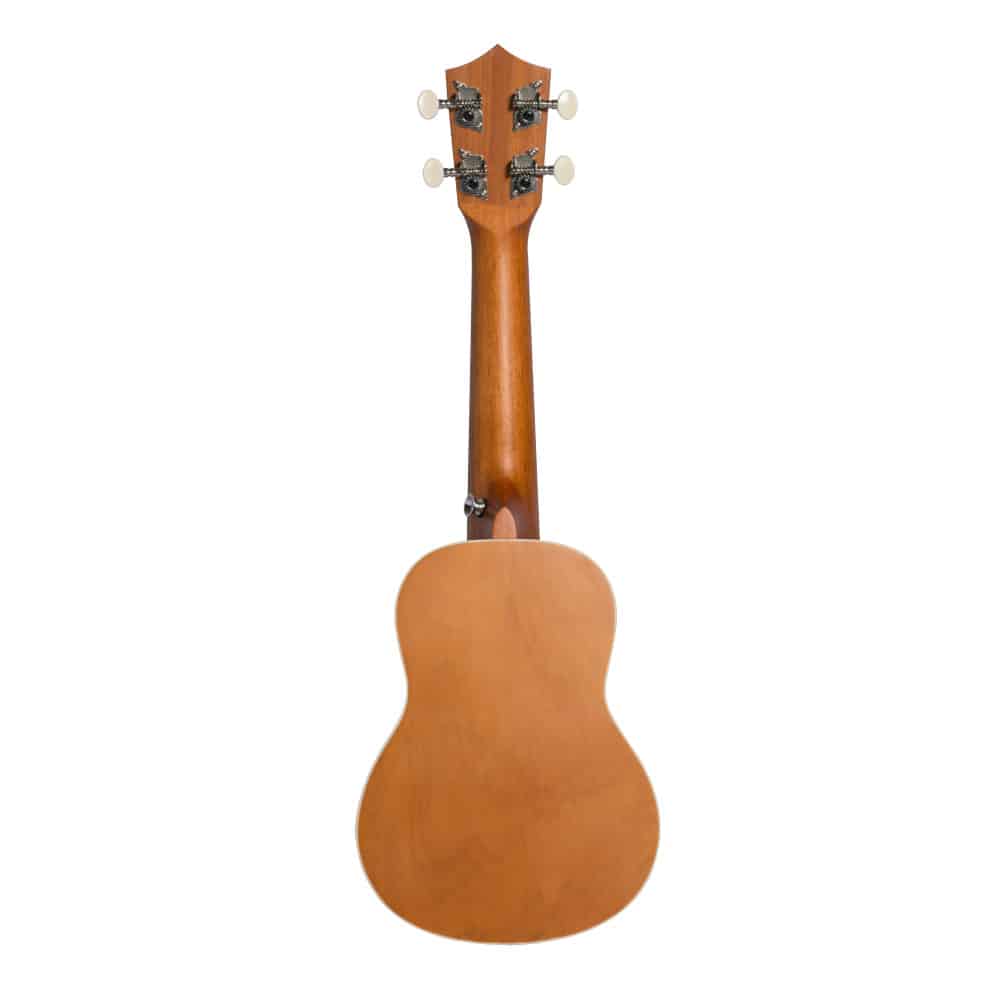 Ukelele Soprano Bamboo Mexico. Tapa: Sapelly. Aros y fondo: Sapelly. Mango: Tilo. Puente: Nogal. Clavijeros: abiertas cromadas. Acabado satinado con diseño colorido. El Ukelele Bamboo Mexico es un ukelele de tamaño soprano perteneciente a la New Collection de Bamboo que convina un aspecto muy llamativo debido a colorido diseño de su tapa y una más que aceptable calidad sonora. Incluye funda de transporte.