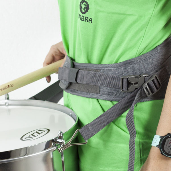 Correa acolchada de cintura Ortolá fabricada en nylon gris con cierre de seguridad y cierre de velcro. La Correa Batukada Ortolá cuenta con dos mosquetones metálicos para enganchar el instrumento de percusión y dos correderas para ajustar el mismo con mayor comodidad. Cuida de tu salud con esta correa que hará que tu instrumento pese mucho menos. Largo cintura: mínimo 103 cm, máximo 120 cm.