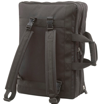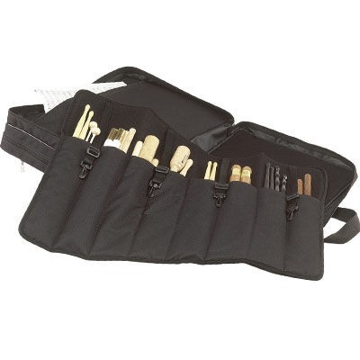 Funda baquetas profesional fabricada en poliéster plastificado e interior de velour con diversos compartimentos. La funda de baquetas profesional tiene un acolchado protector de 10 mm. Para facilitar el transporte cuenta con dos asas a modo de mochila y bolsillo exterior. Medidas: 52x38x18 cm.