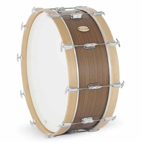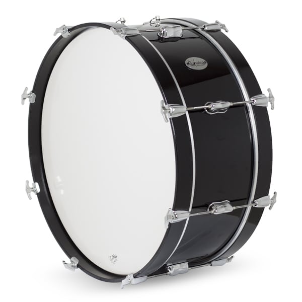 Bombo Marcha Gonalca fabricado con casco de abedul de 8 mm (5 láminas) y aros de haya de 8 mm (5 láminas), sistema de tensión de bellota central con independencia de para cada parche con 8 tensores. Parches Remo UT Ambassador blanco. En este artículo se ofrecen algunos de los acabados más comunes, pero existe gran variedad (consultar tabla de colores). 5 medidas disponibles. Peso 3,5 kg – 5,5 kg según medida