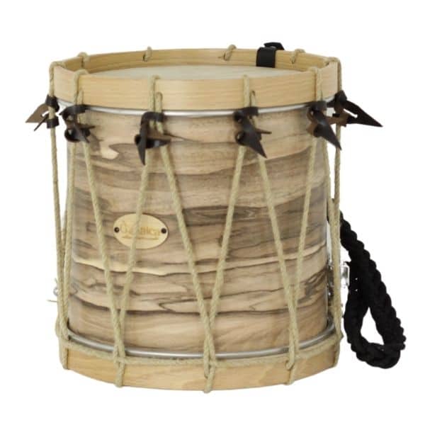 Tamboril Vasco Gonalca Cover construido con casco de abedul de 8 mm en 5 láminas y aros de haya. El sistema de tensión del Tamboril vasco Gonalca Cover consta de cuerdas al modo tradicional (se puede elegir cáñamo o cuerda blanca). Gonalca ha conseguido el equilibrio entre tradición y varguardia, de manera que no renuncia al sonido original pero añadiendo una mayor funcionalidad al poder utilizar accesorios y recambios estandarizados. Parches de piel de cabrito con arillo de madera y bordón de tripa. Incluye correa de trenza. Peso 1,61 kg. Mod. 8475
