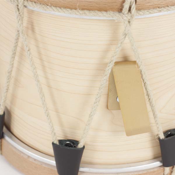 Tamboril Gallego Cover 25×20 construido con casco de abedul y aros de haya. El sistema de tensión del Tamboril Gallego Cover es de cuerda de cáñamo con tensores de piel, al modo tradicional. Gonalca ha conseguido el equilibrio entre tradición y varguardia, de manera que no renuncia al sonido original pero añadiendo una mayor funcionalidad al poder utilizar accesorios y recambios estandarizados. Acabado natural (consultar otras posibilidades) gancho de colgar y bordones de seda. Parche de piel con arillo metálico. Peso: 1,45 kg. (7913)