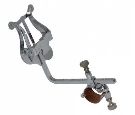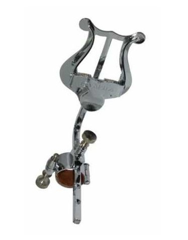 Atril de corneta fabricado en metal con acabado plateado o de latón y regulable para ajustarlo a la distancia más cómoda para tu interpretación. Existen dos posibilidades para colocar la argolla, de forma paralela a la tubería, o de forma perpendicular a la misma (codo de la tubería).