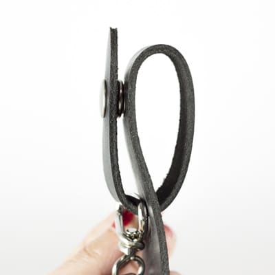 Colgador de corneta fabricado en piel y con mosquetón metálico para llevar tu instrumento de una forma mucho más cómoda enganchada a tu cinturón.